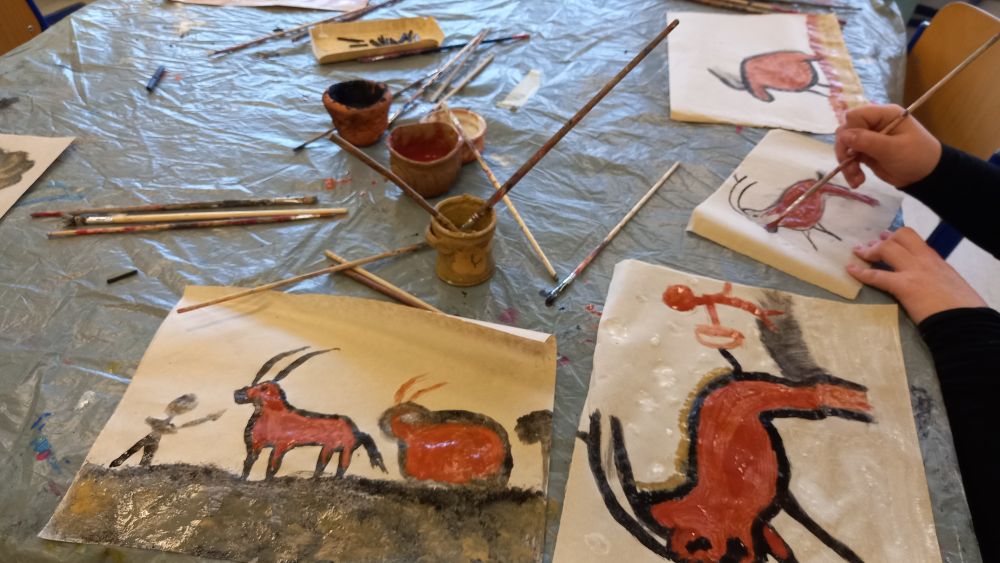 2025 Herbstblätter November – Herbstblätter mit Pastellkreide Höhlenmalerei November – eine Zeitreise in die Altsteinzeit, Höhlenmalerei mit selbst hergestellten Farben Halloween Oktober – Spinnen, Fledermäuse und Kürbisse aus Pappmaschee als Halloween-Deko Mittelaltertag September – Mittelalterliches Leben und Handwerk auf der Burg: Maispüppchen und Beuteldruck Tag der Vereine Juni – unser Angebot: Bücherbinden und gestalten, Pappelrinde schnitzen Schnitzen Juni – Pappelrinde, japanischen Knöterich und Stöcke kann man schnitzen und feilen Kindertag Juni – SchmuckWerkstatt: Schmuckstücke aus Speckstein und Ketten, Armbänder, Ohrringe aus Perlen Papiertürme Mai – hier ist Teamarbeit gefragt: Türme aus Zeitungspapier bauen Vorbereitung der neuen Zaungäste Mai – die Bretter der alten Zaungäste sind abgeschliffen und werden grundiert. Draußen Zeichnen und Landart April – das Frühlingswetter lockt hinaus Osterbasteleien März – Kätzchen, Eulen,Vögelchen u.a. Objekte aus Eierkartons und Pappe Collagen März – Malen mit der Schere Tapeart März – Bilder aus bunten Tapes komponieren Primeln und Stiefmütterchen März – Frühlingsblumen ganz groß in Pastell Steckbriefe Februar Reislandkarten Januar Farbexperimente Januar – Farbexperimente mit Salz und Folie Feuerwerk Januar – Drucken mit Papprollen