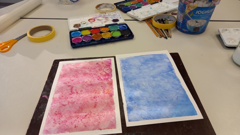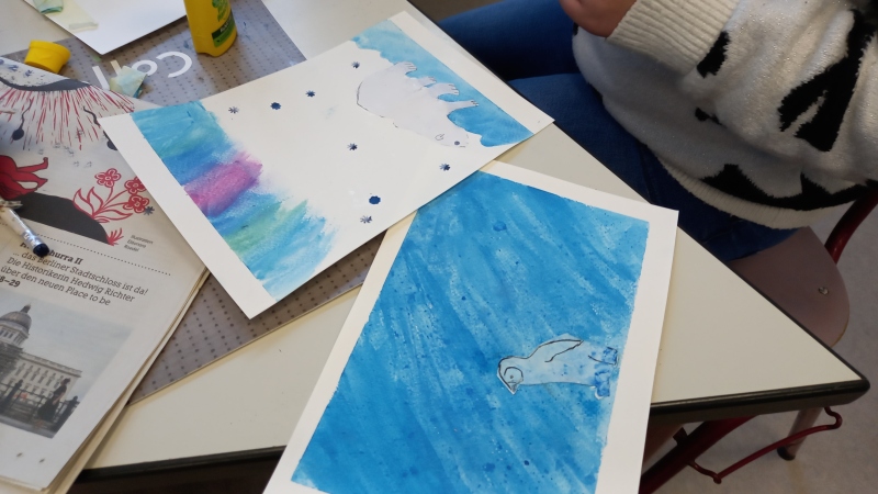 2026 Polarlicht Januar – Manche haben es mit eigenen Augen gesehen, andere auf Fotos – wir malen es mit Pastellkreiden Eis Januar – Kristallstrukturen mit Aquarellfarben, Frischhaltefolie und/oder Salz