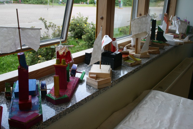 August / Hort • Der Mühlteich, die Linde: Wasser ist allgegenwärtig in Burg Stargard, ein Sommerferienprojekt soll uns ans Wasser bringen. Mit Begeisterung werkeln die Kinder mit Holz, Styropor und anderen Materialien – durch sägen, schneiden, feilen, bohren, hämmern, kleben, bemalen entstehen fantasievolle Boote mit Segeln, Schaufelrädern, Türmen, und – sie Schwimmen!