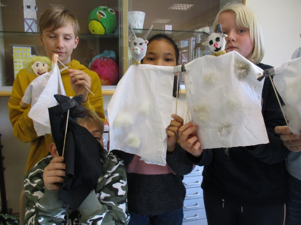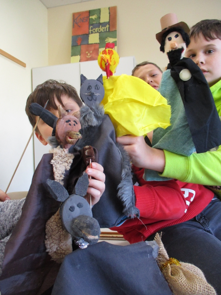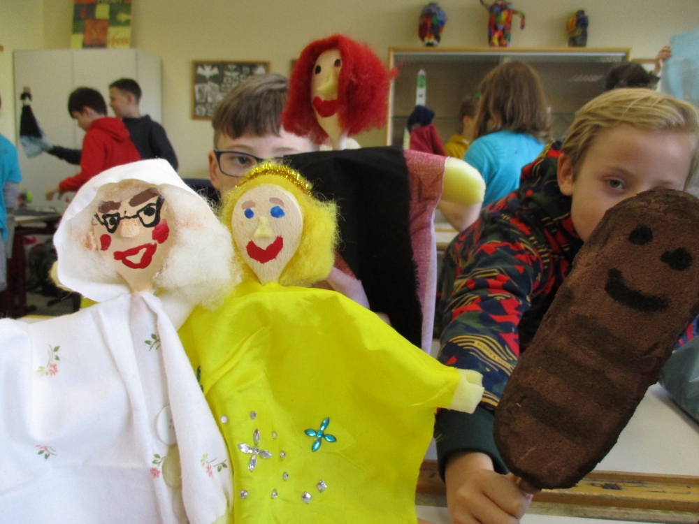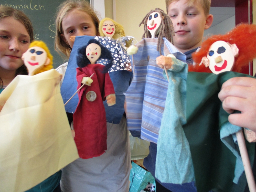 Oktober • Das Bauen von Stabpuppen für das Märchenprojekt gehört nun schon länger zu unserer „bunten Palette“ – und macht immer wieder großen Spaß, auch weil die figuren nachher noch eine Weile in der Schule unterwegs sind, wenn die Schüler*innen ihre Märchen proben.